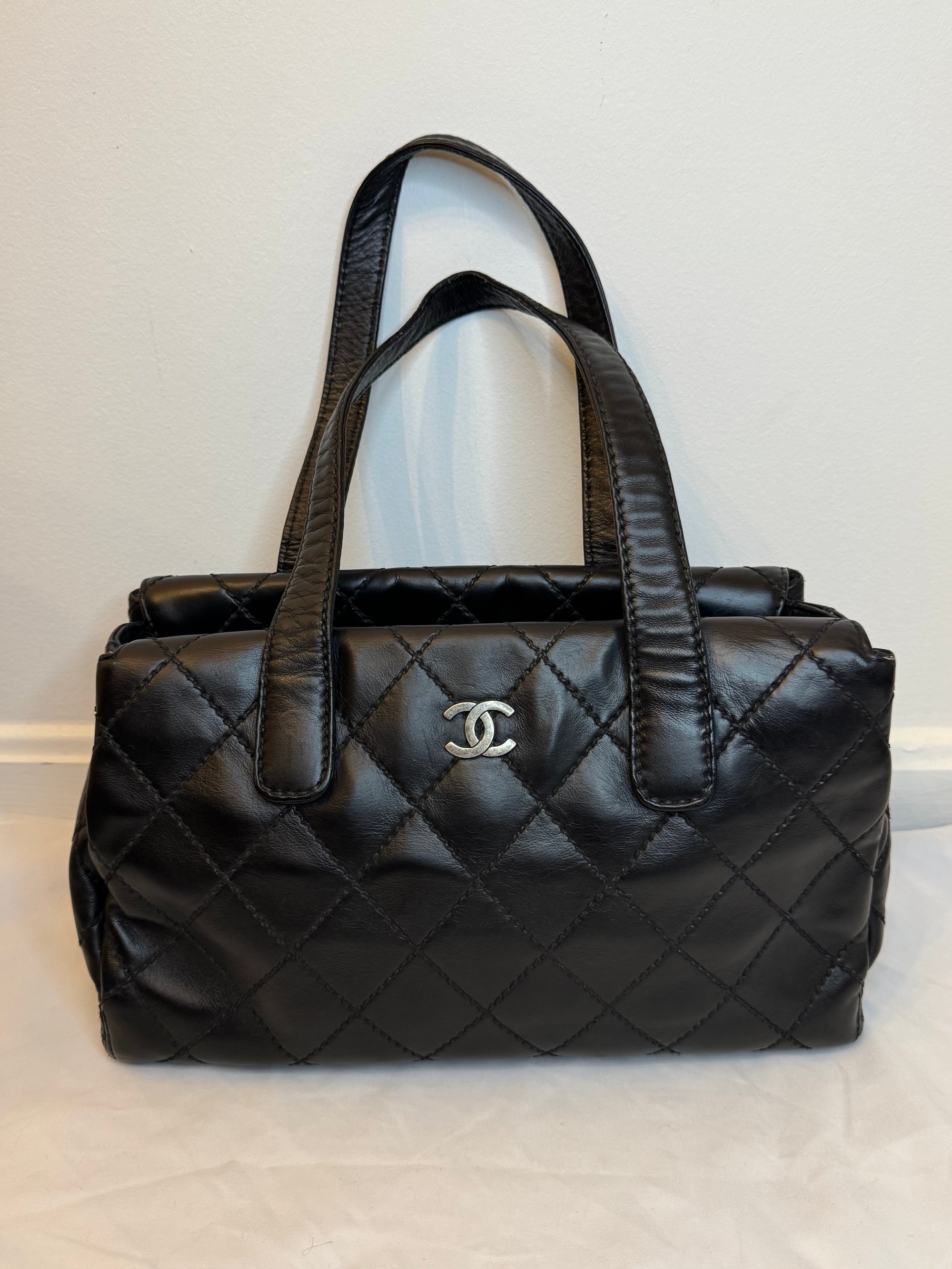 Interior: While not shown, Chanel wild stitch bags typically feature a fabric or leather interior with zip or slip compartments. Assuming consistent condition, the interior is likely clean with some expected signs of wear.